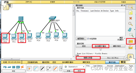 添加简单PDU,PC4 向PC5 发送的数据包; PC6 向PC7 发送数据包;