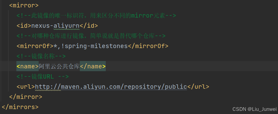2.如果maven配置了阿里云镜像,需要在maven配置文件中进行屏蔽配置: