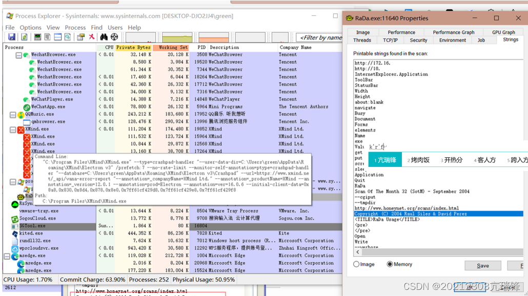 字符串分析:使用Strings工具或IDA Pro的Strings窗口查找可疑字符串,包括命令、URL、注册表键等,以了解其功能和行为。