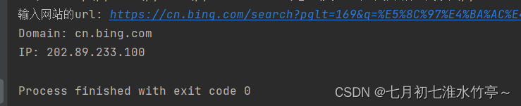 输入网站url后,出现该url对应的域名和主机ip地址。