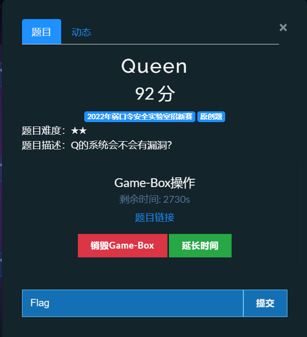 青少年CTF-WEB-Queen 先抓包这个页面,然后再头部信息里面添加X-Forwarded-For:127.0.0.1。再次发送发现有回显页面,data后面是一串base64加密的值,先解密看一下。解密之后发现是将用户名和密码加密了,想到有可能是sql注入。提交完显示不是管理员的ip,这里想到用xff绕过。然后直接爆它的sql数据库就可以看到flag了。右键将login.php页面复制到文件。用sqlmap -l 跑就可以了。用户名密码随便输入,点击提交。打开环境,是一个网页登录界面。
