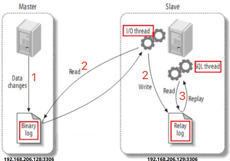 依次在主节点、从节点一、从节点二执行以下四条语句: