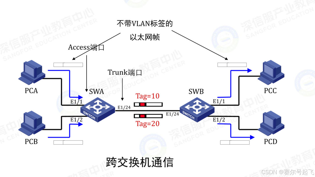 VLAN标签:交换机用VLAN标签区分不同VLAN的以太网帧