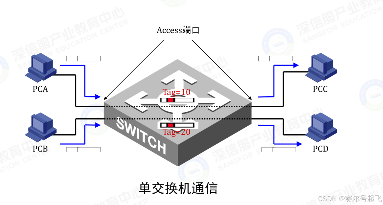 Access端口:仅允许一个VLAN通过,用于连接终端