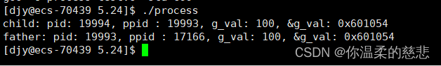 我们发现,父子进程,输出地址是一致的,但是变量内容不一样!能得出如下结论: