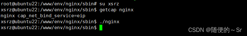 使用 getcap 指令查看nginx的端口权限绑定成功