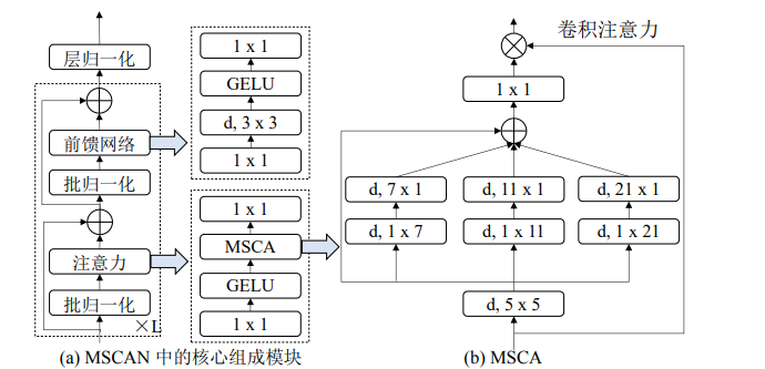 【YOLOv8改进】MSCA: 多尺度卷积注意力 (论文笔记+引入代码).md 我们提出了SegNeXt,一种用于语义分割的简单卷积网络架构。最近基于变换器的模型由于自注意力在编码空间信息方面的效率而在语义分割领域占据主导地位。在本文中,我们展示了卷积注意力是一种比变换器中的自注意力机制更高效和有效的编码上下文信息的方式。通过重新审视成功的分割模型所拥有的特征,我们发现了几个关键组件,这些组件导致了分割模型性能的提升。这激励我们设计了一种新颖的卷积注意力网络,该网络使用廉价的卷积操作。