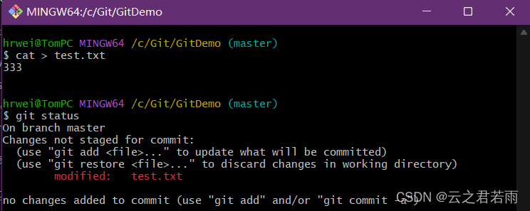 如果对Unmodified状态的文件(test.txt)进行修改---> modified