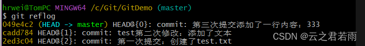 git reflog:查看HEAD指针的移动历史(包括被回滚的版本)