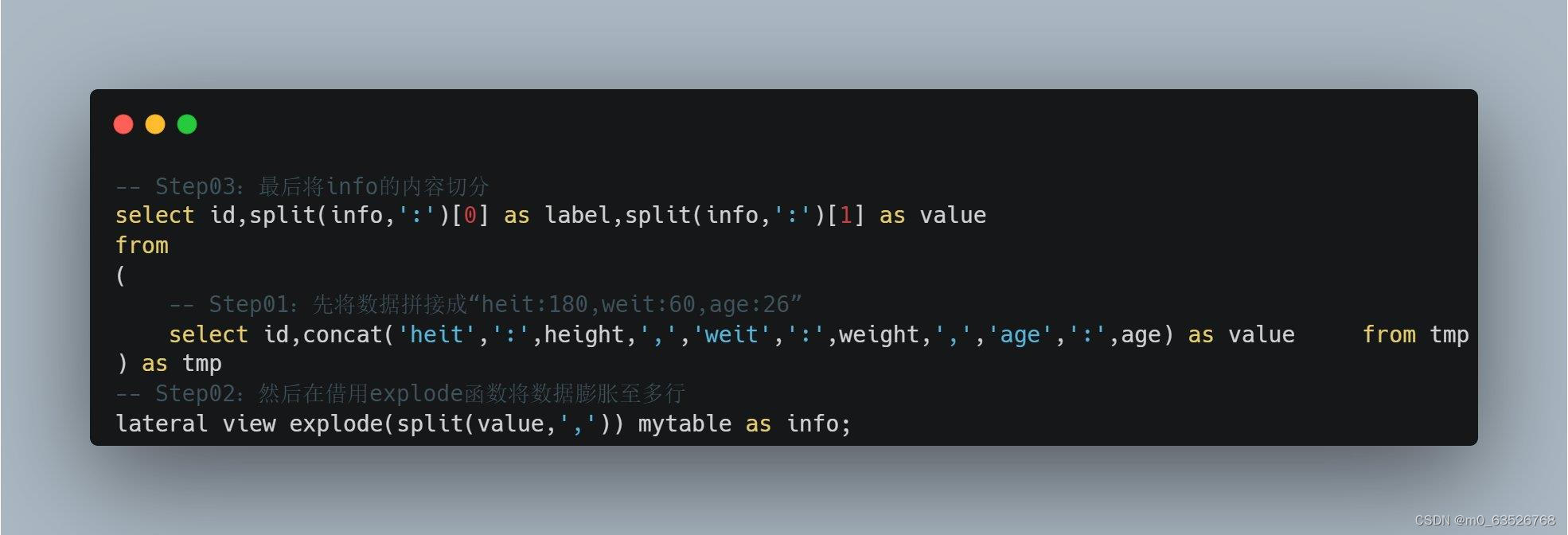 本文介绍了如何使用HiveSQL进行行转列的操作,包括将表中一行数据拼接、explode函数和split函数的应用。通过示例展示了建表、导入数据以及转换过程,最终达到将原始表格格式转换的目标。