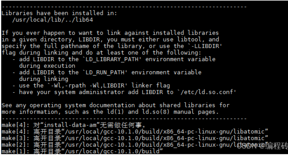 该过程比较漫长,大约需要2小时以上,需要耐心等待,如果编译安装过程没有报错,最后一段打印大概是这样: