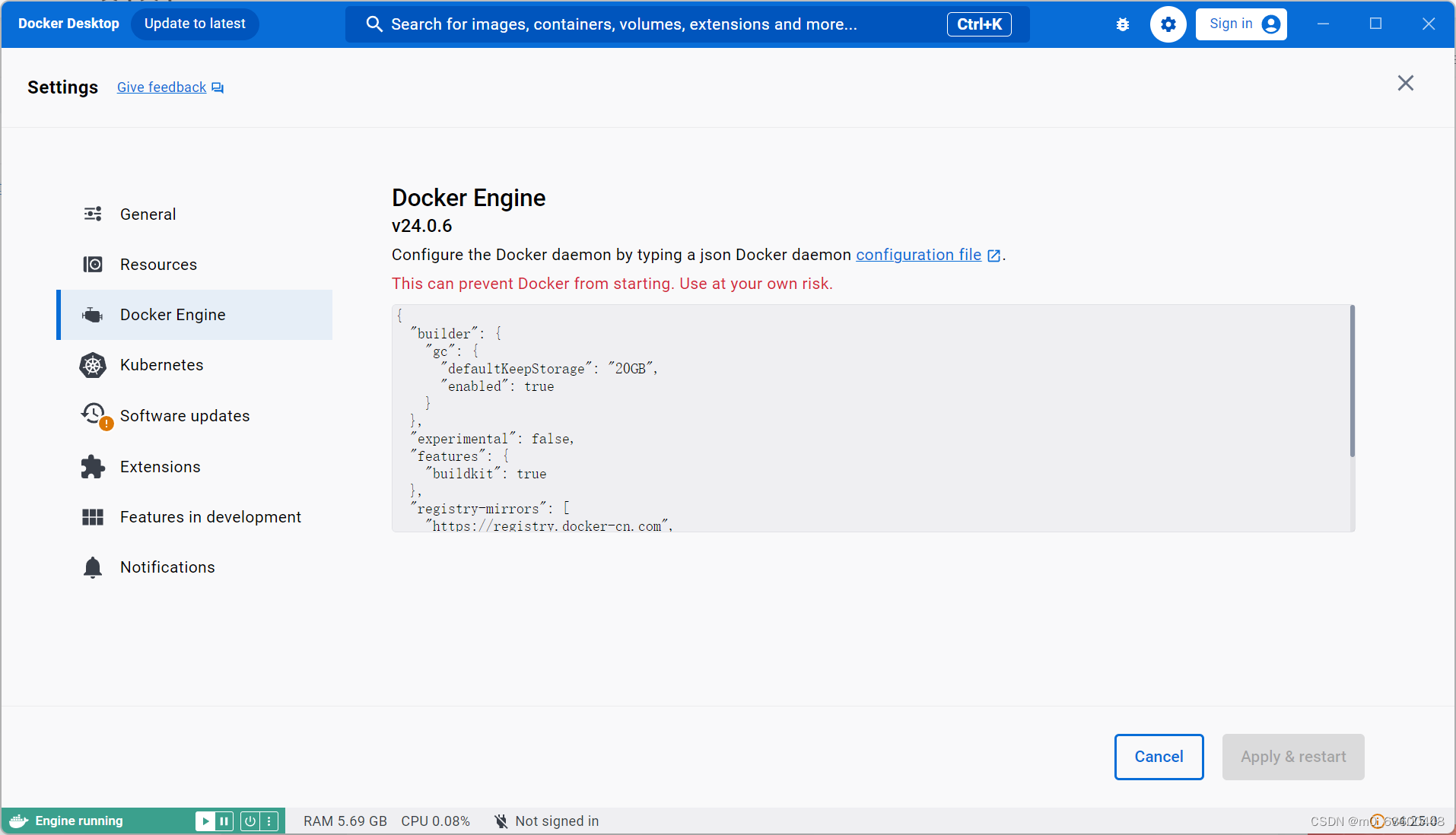 我们进入设置,点击Docker Engine