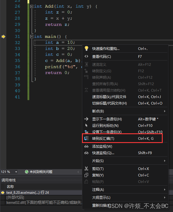 接下来就是函数栈帧的创建和销毁,这里我们需要打开反汇编代码,逐条分析: