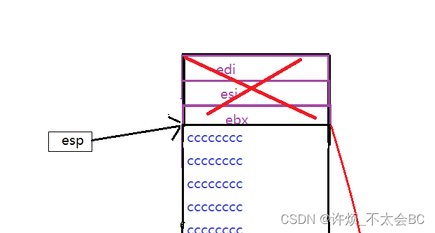 pop 意思是弹出,接下来就是函数栈帧的销毁,此时edi,esi,ebx就被销毁了