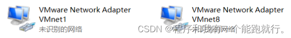 注意:安装完vmware之后,会在你的网络适配器中多出两个网卡:vmnet1 , vmnet1(虚拟网卡)