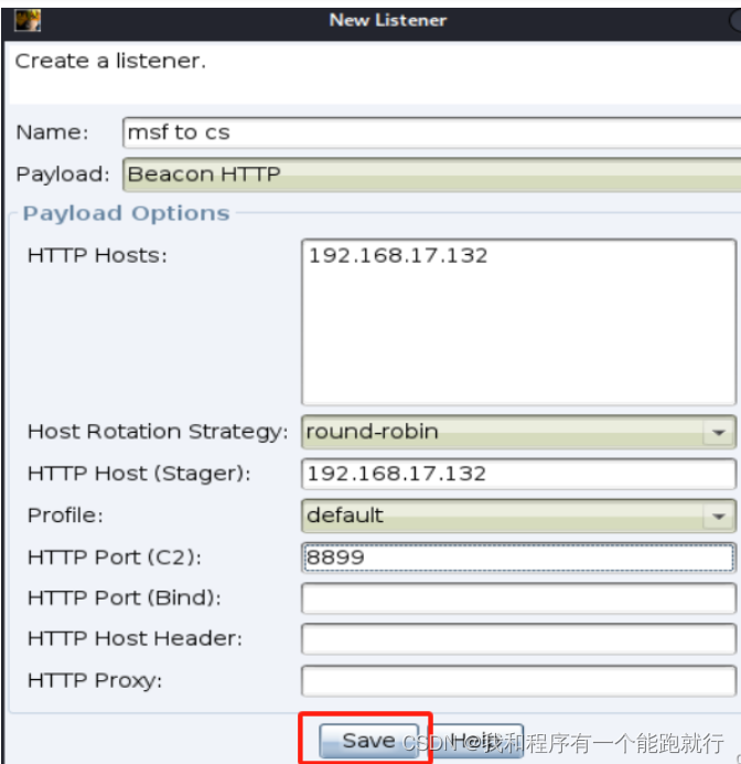 攻击IP:192.168.17.132(kali——cs服务端、msf所在主机)