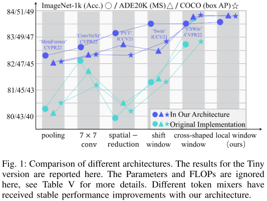 视觉Transformer在计算机视觉任务中显示出巨大的潜力。 最近的工作主要集中在详细阐述空间令牌混合器以提高性能。 然而,我们观察到,设计良好的通用架构可以显著提高整个骨干网的性能,无论配备哪种空间令牌混合器。 本文提出了一种改进的视觉骨干网通用体系结构UniNext。 为了验证它的有效性,我们用各种典型的和现代的设计实例化了空间令牌混合器,包括卷积和注意模块。 与提出的体系结构相比,我们的UniNext体系结构可以稳定地提高所有空间令牌混合器的性能,缩小它们之间的性能差距。 令人惊讶的是,我们的UniNext配备了原始的本地窗口注意力,其性能甚至超过了以前的最先进水平。 有趣的是,这些空间令牌混合器在UniNext下的排名也发生了变化,表明一个优秀的空间令牌混合器可能会因为一个次优的通用架构而被扼杀,这进一步说明了对视觉骨干网通用架构研究的重要性。