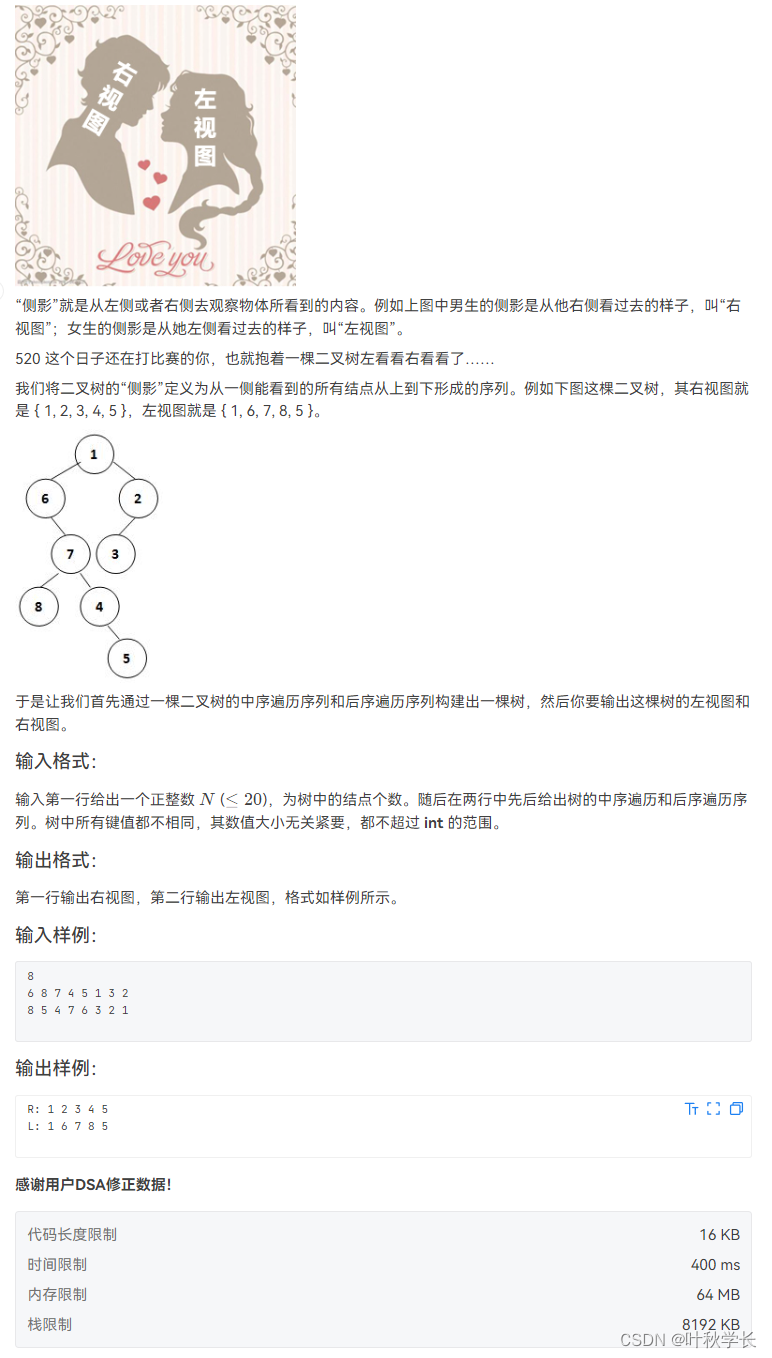 今天是PTA题库解法讲解的第九天,今天我们要讲解浪漫侧影,题目如下: