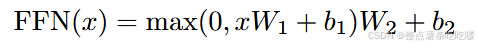FFN(x)=ReLU(xW1+b1)W2+b2.FFN(x)=ReLU(xW1+b1)W2+b2.