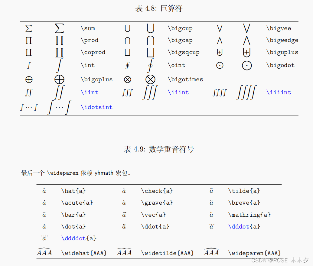 下面是一些常用符号的表示,来源于《一份(不太)简短的 LATEX 2ε 介绍 》