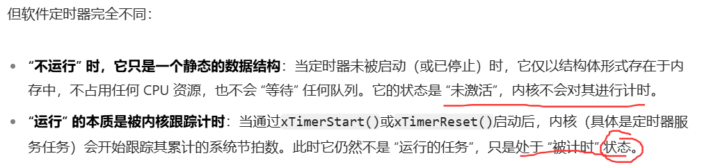 那么软件定时器到底是什么?在接收到start,reset或者period队列信号后运行,在不运行的时候他是不是像普通任务一样一直等待队列呢?