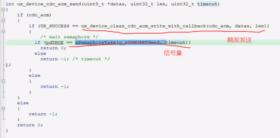 (阻塞,等待发送完成)这个就会得到信号量,发送完成。