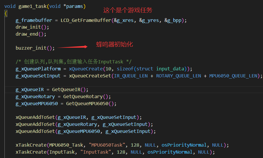 在初始化的时候创建队列,所以我们要把各个函数创建队列的函数初始化,放在最开始,因为游戏一开始就要初始化,就要给各个创建队列。