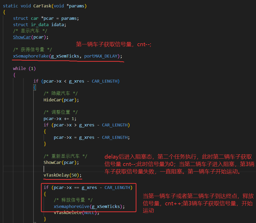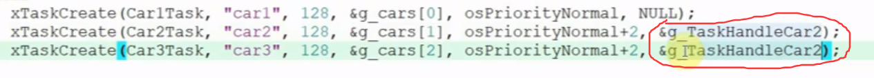 此时就要对车的任务重新编写,因为车1车3需要读取信号量,车2不用。