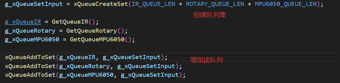 我们先在初始化里面创建队列,然后队列集里面添加读队列,然后创建任务,把读到的数据传进姿态控制的队列。