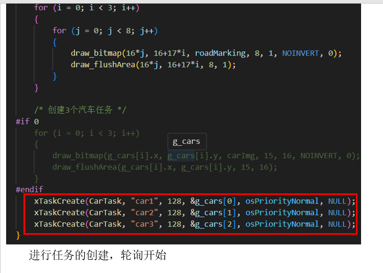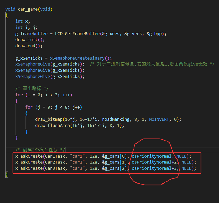 第24个程序,就是先创建一个事件组,然后car1,car2设置写入bit0,car3设置bit0启动,此时car1或car2到达终点后,car3启动了。