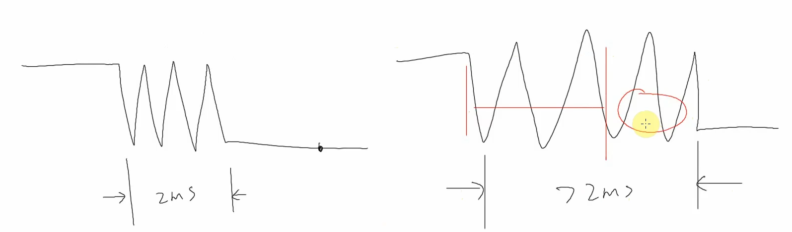 像上面一样,每次上升的间隔<2ms,认为是抖动,直接返回不处理。