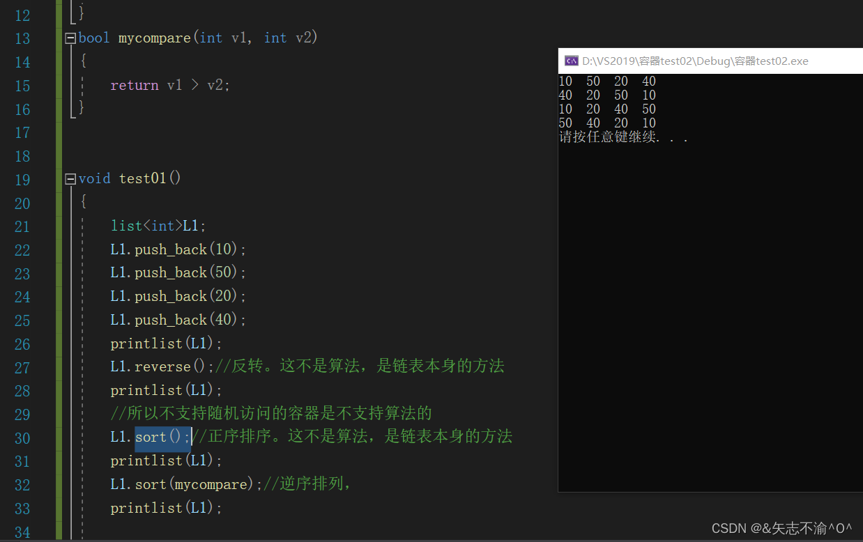 这里重点要注意list容器中逆序排列要根据sort重新构造函数。