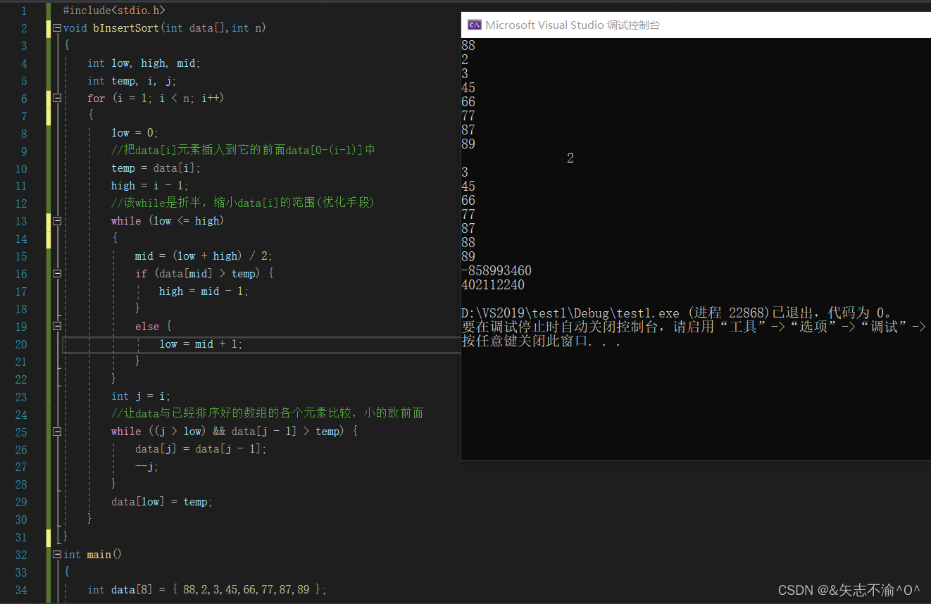 c. 再对左右区间重复第二步,直到各区间只有一个数。