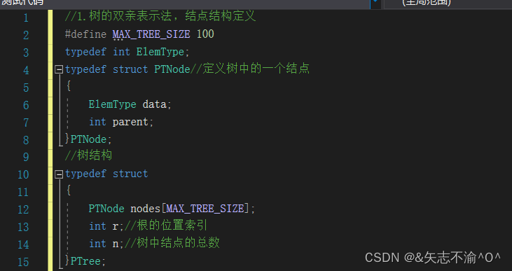1.双亲表示法:我们假设以一段连续空间存储树的结点,同时在每个结点中,附设一个指示器指示其双亲结点到链表中的位置。也就是说,每个结点除了直到自己是谁外,还要直到自己的双亲在哪里。如图(其中data就是数据域,存储结点的信息。而parent是指针域,存储该结点的双亲在数组中的下标):