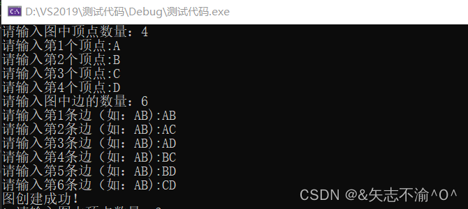 printf("输入顶点信息(顶点信息用一个字符表示):\n");