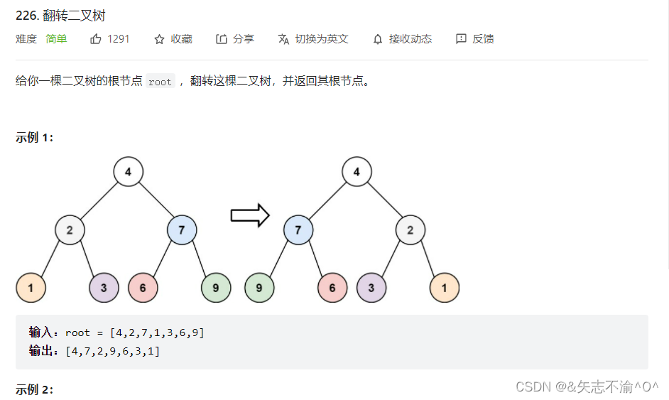核心思路:递归(没错,就是我们的老朋友——递归,在做二叉树的时候递归应该是我们首先要考虑的解题核心)首先先递归遍历到左边叶子结点,进行左右交换,再往上退到根节点,先递归遍历到右边叶子结点。进行右左交换。再往上退到根节点,对根结点的左右结点进行左右交换,注意最下面的叶子结点也会随着根节点进行交换(这一点很重要)。