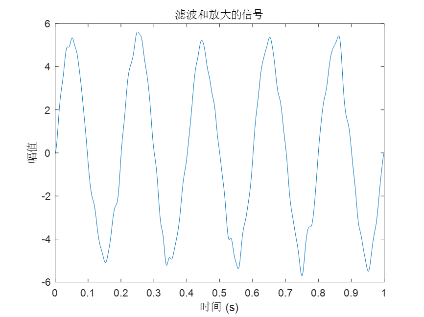 为了更好地处理信号,我们对其进行了放大,放大倍数为10。放大处理使得信号的幅值范围从约-0.5到0.5增加到约-5到5。放大处理后的信号幅度更大,这有助于后续信号处理步骤中的分析和处理。