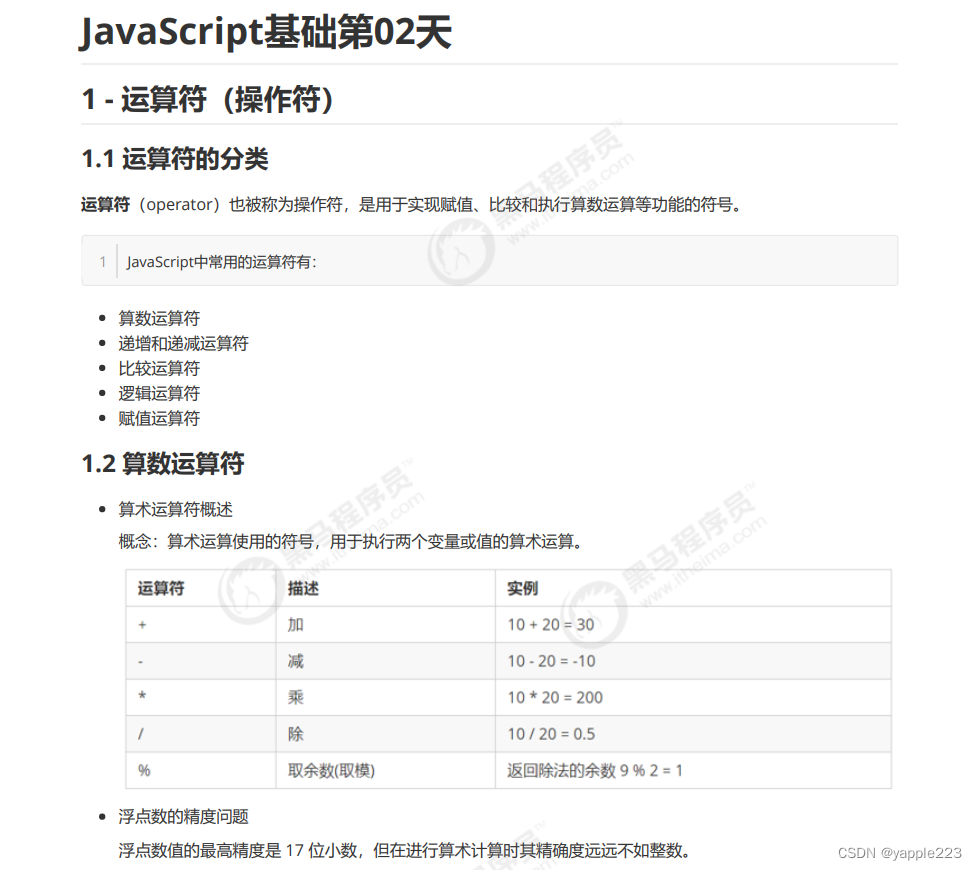 B站黑马程序员,JavaScript第二天原版笔记截图。