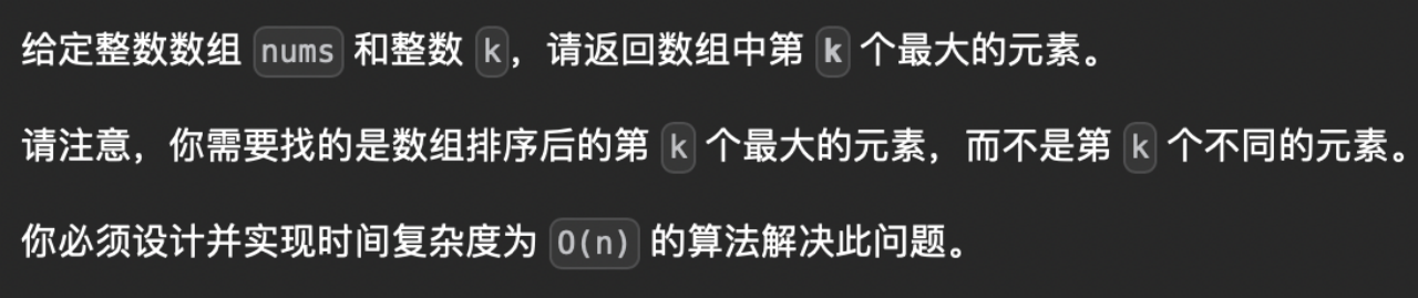 综上所述,这段代码的时间复杂度为 O(n log k),空间复杂度为 O(k)。其中,n 表示数组的长度。对于一个输入数组较大,且 k 比较小的情况,这个算法的时间复杂度比直接对整个数组排序的时间复杂度更优秀。