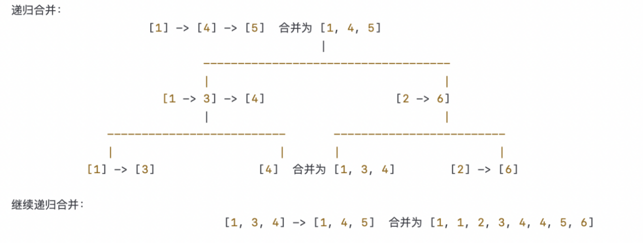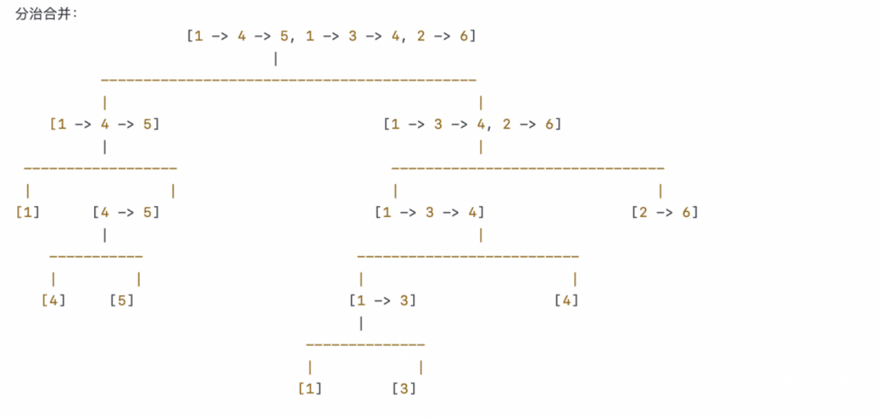 链表数组:[1 -> 4 -> 5, 1 -> 3 -> 4, 2 -> 6]
