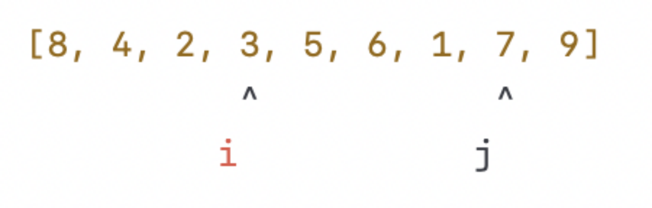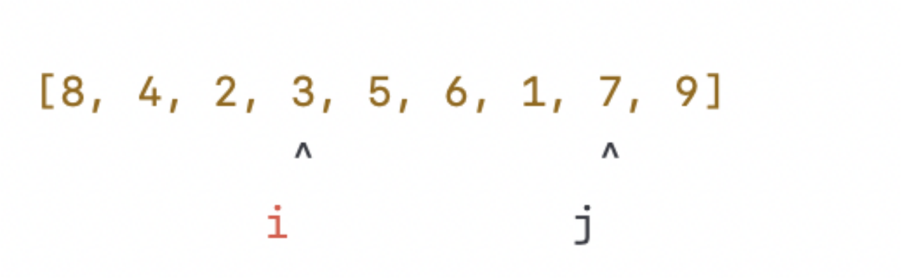 指针 i 和指针 j 分别从数组的左右两端开始向中间遍历。当指针 i 找到一个比枢轴元素小或者相等的元素时,就将其与指针 j 所指向的元素交换。这样,所有小于或等于枢轴元素的元素都会被放到左边,大于枢轴元素的元素都会被放到右边。