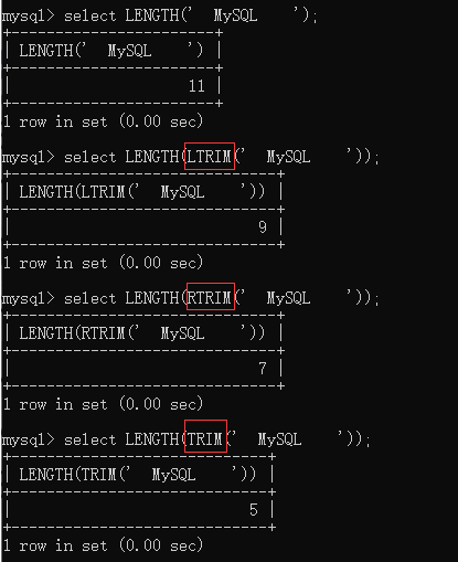 3. LTRIM()、RTRIM() 与 TRIM()