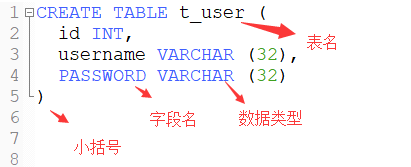CREATE TABLE 表名