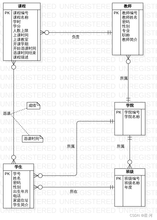 选课包含以下字段名: 选课时间、成绩。