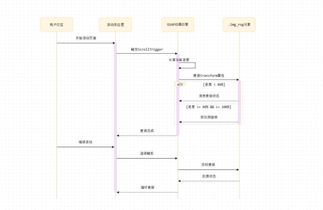 - GSAP动画引擎负责计算当前滚动进度(80%~100%范围内)
