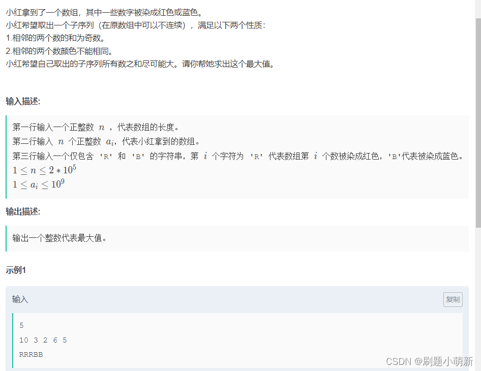 dp[x][y]=max(dp[x][y],dp[!x][!y]+a[i]);