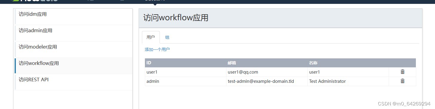 :可以结合业务需求,业务可以根据不同步骤执行不同的业务操作 - 分配用户:这里为了方便,直接选择了固定值,这里的候选组是具体的业务系统的角色