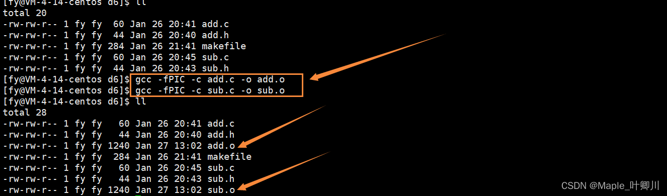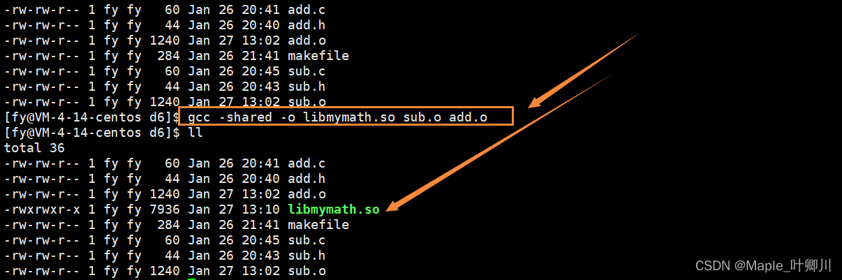 (2)生成动态库时我们不必使用ar命令,使用 gcc 生成动态库即可,这里也是多加了一个选项 -shared