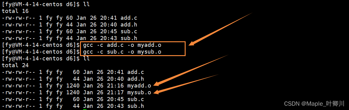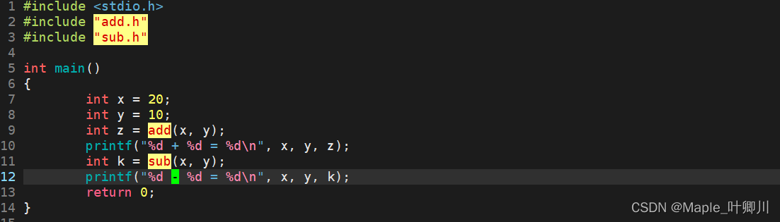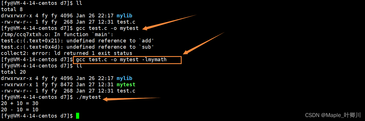 - 头文件 add.h,sub.h 当中只有 add(),sub() 函数的声明,并没有该函数的定义,所以还需要指定所要链接库文件的搜索路径