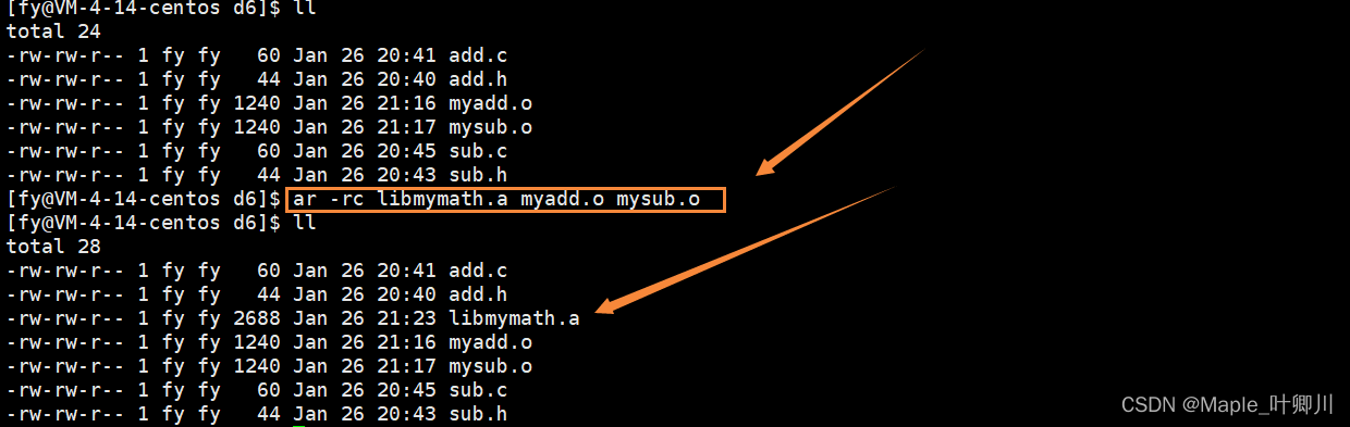 - -r (replace):若静态库文件当中的目标文件有更新,则用新的目标文件替换旧的目标文件